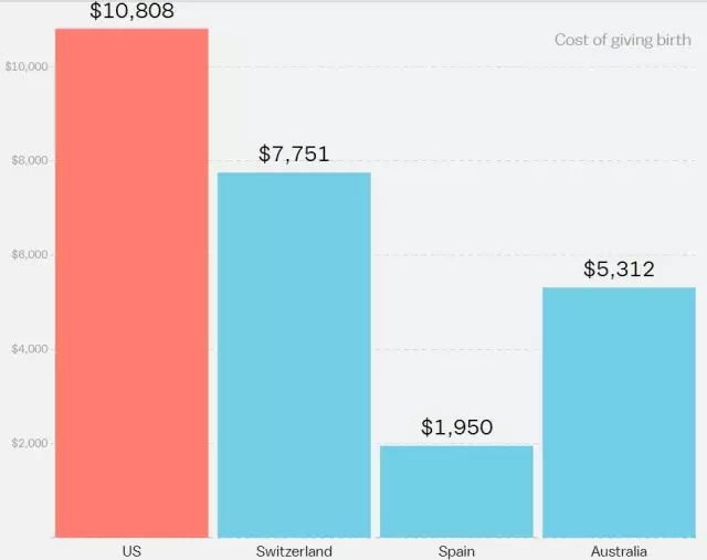 在美国生个孩子1万多美金,相当于7万元人民币。