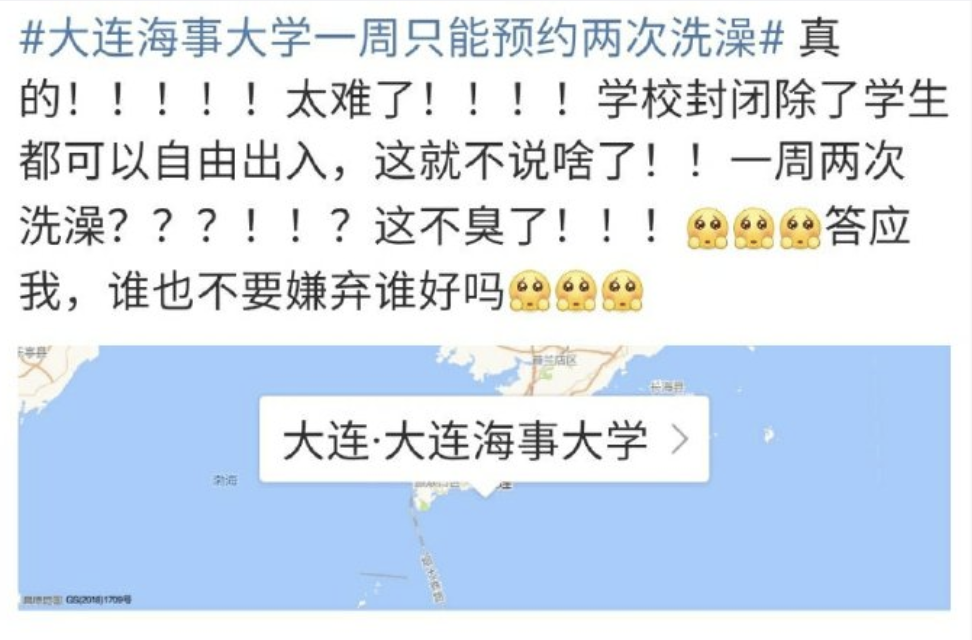 同学反馈的 “大连海事大学一周只能预约两次洗澡” 的事件也引起了热议!