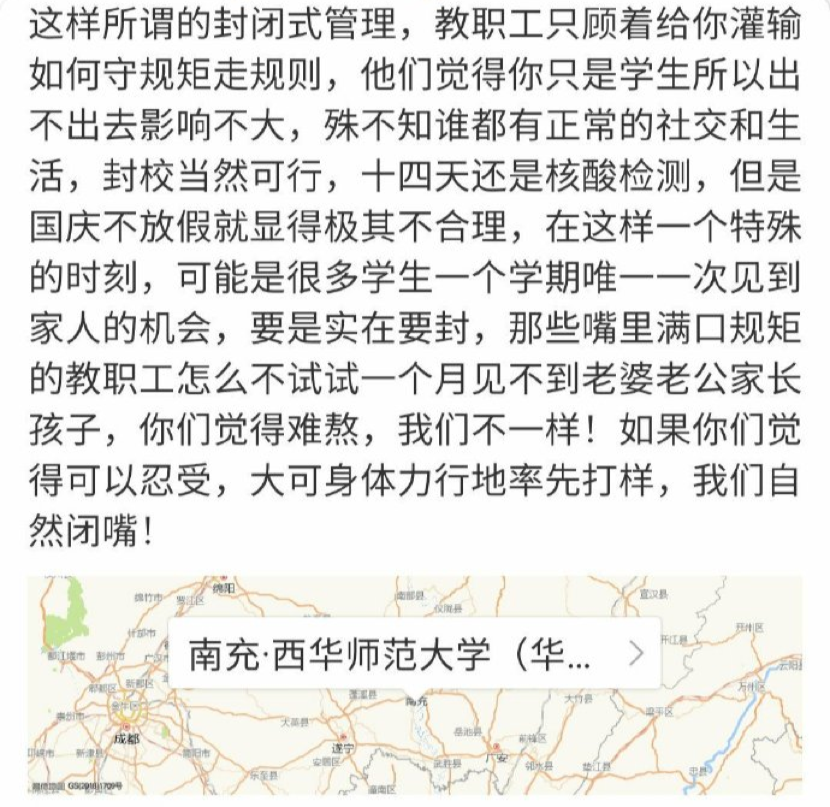 这不西华师范大学的同学们实在是忍不了学校的管理措施了!纷纷到网上求助!