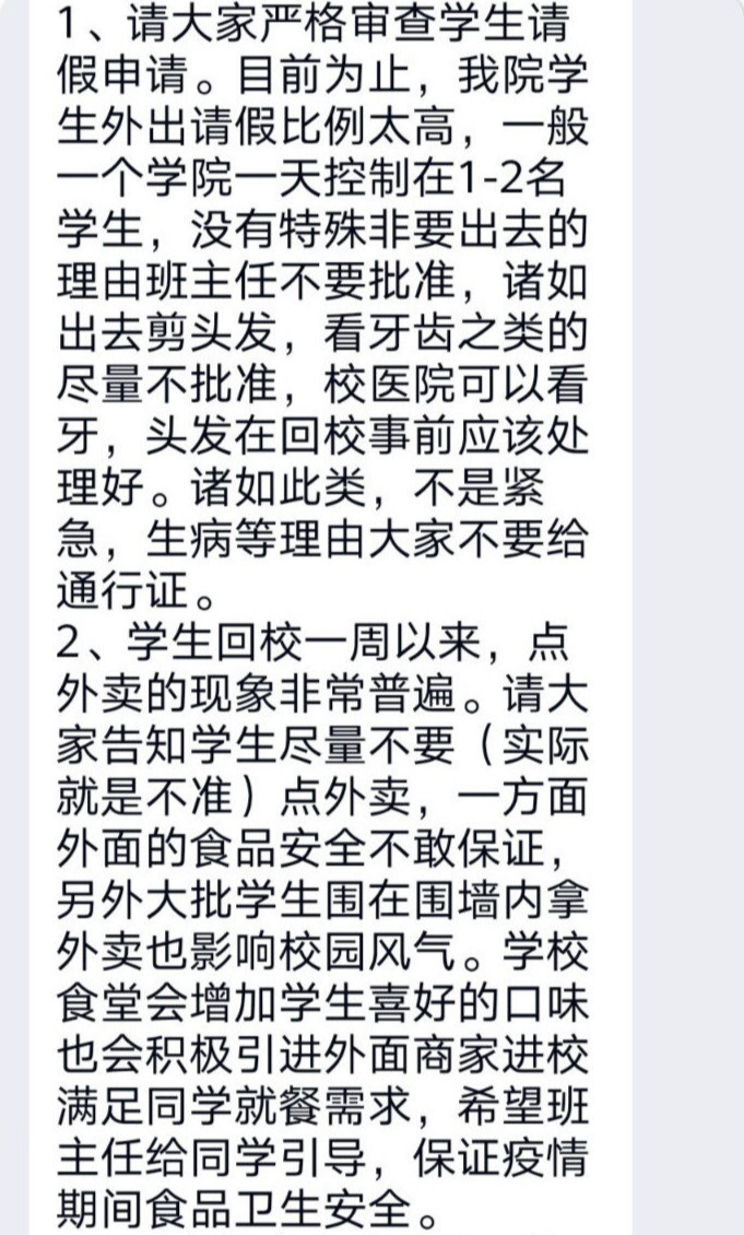 该校学生调侃道 “大概成为中国高校第一个因为点外卖可以被记过的高校吧!”