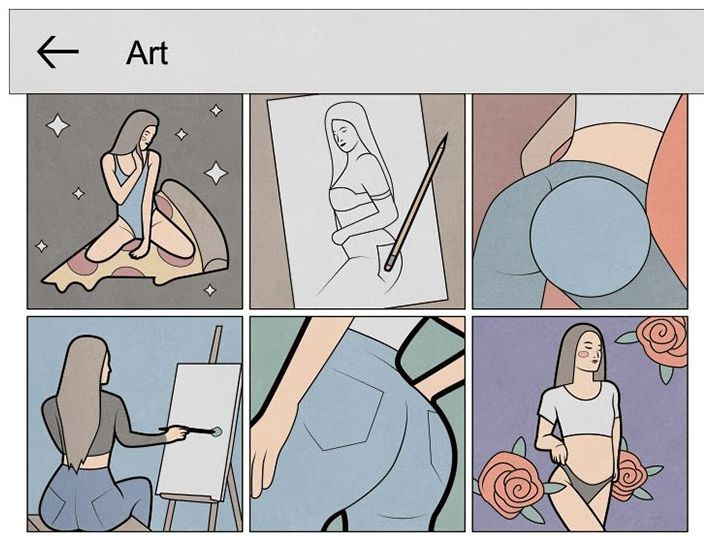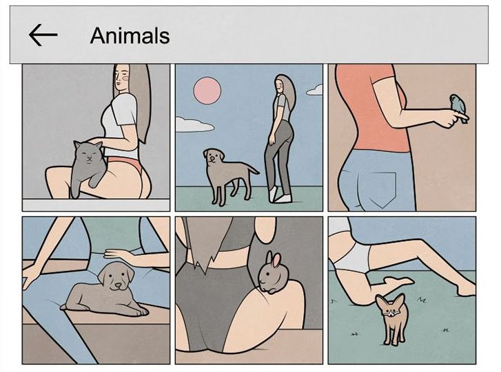 在俄罗斯,一位名叫安东古迪姆的艺术家,在刷完Ins后,也和大家一样,总结了一波Ins网红拍照套路,还分门别类地画成了简单易懂的漫画。
