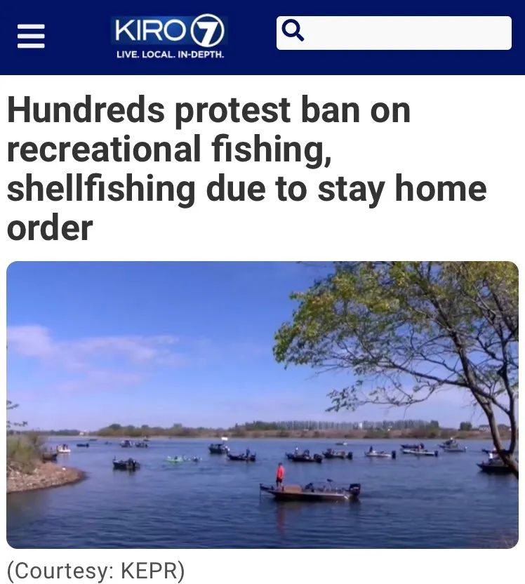 本周六,在西雅图郊区的Richland,数百人参加了对华州州长Jay Inslee在家办公规定的抗议游行,主要原因还是不让他们钓鱼了。