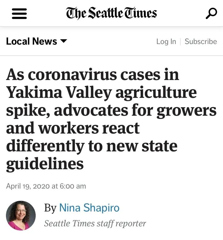 华州Yakima县卫生官员说,他们已经在农场和水果包装工人中发现了70例新冠病毒病例。