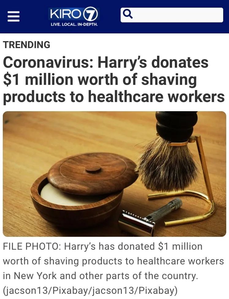 Harry’s以其个人护理设备系列而闻名,近日,这家美容和剃须产品公司向纽约的医护人员捐赠了价值50万美元的产品,并向其他州的医护人员也提供了价值50万美元的产品。