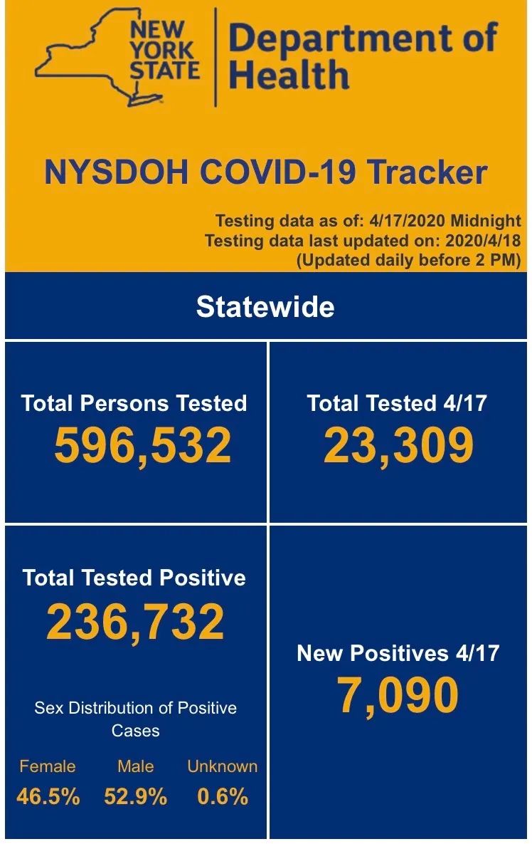 纽约州24小时内死亡新增507人,总数为13869人。另外如果麻省需要呼吸机,纽约州可以支援400台。下周开始,纽约全州范围内都将将进行新冠病毒抗体测试。