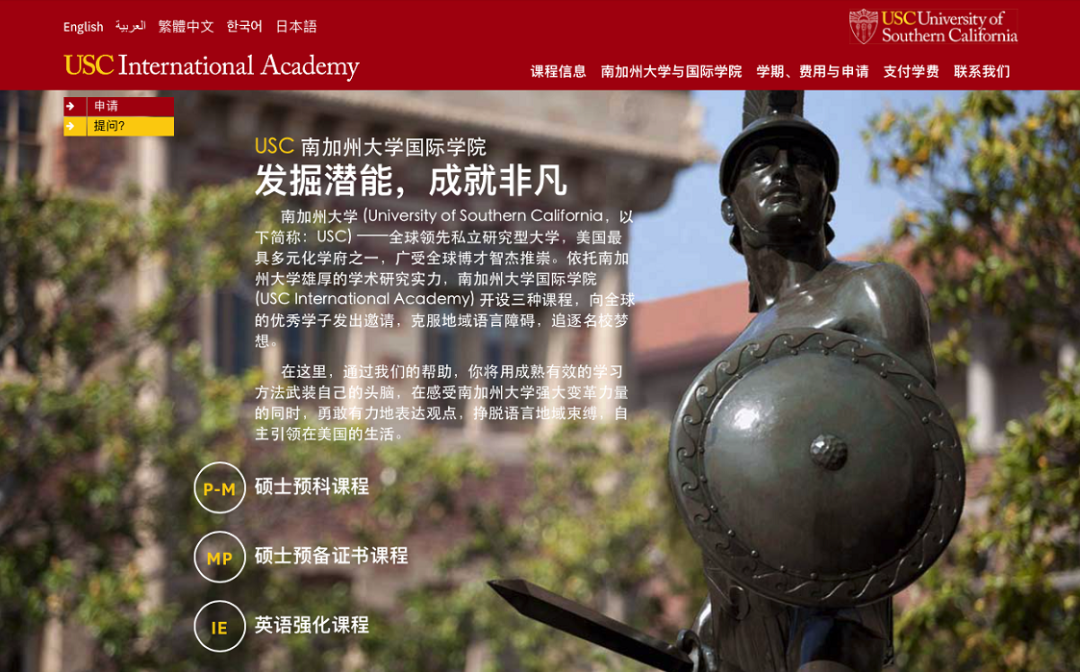 比如,为了更接地气,给中国学生营造亲切感,一些美国大学甚至特别定制了中文官网,比如南加大。