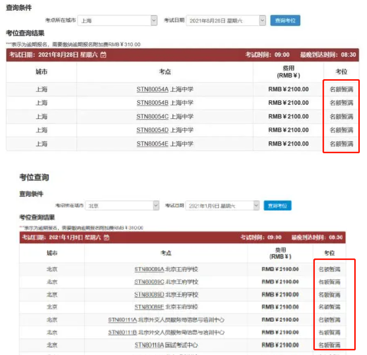 但仅仅5分钟后,北京上海的考位全部“售罄”,全国各地的余位也所剩无几。