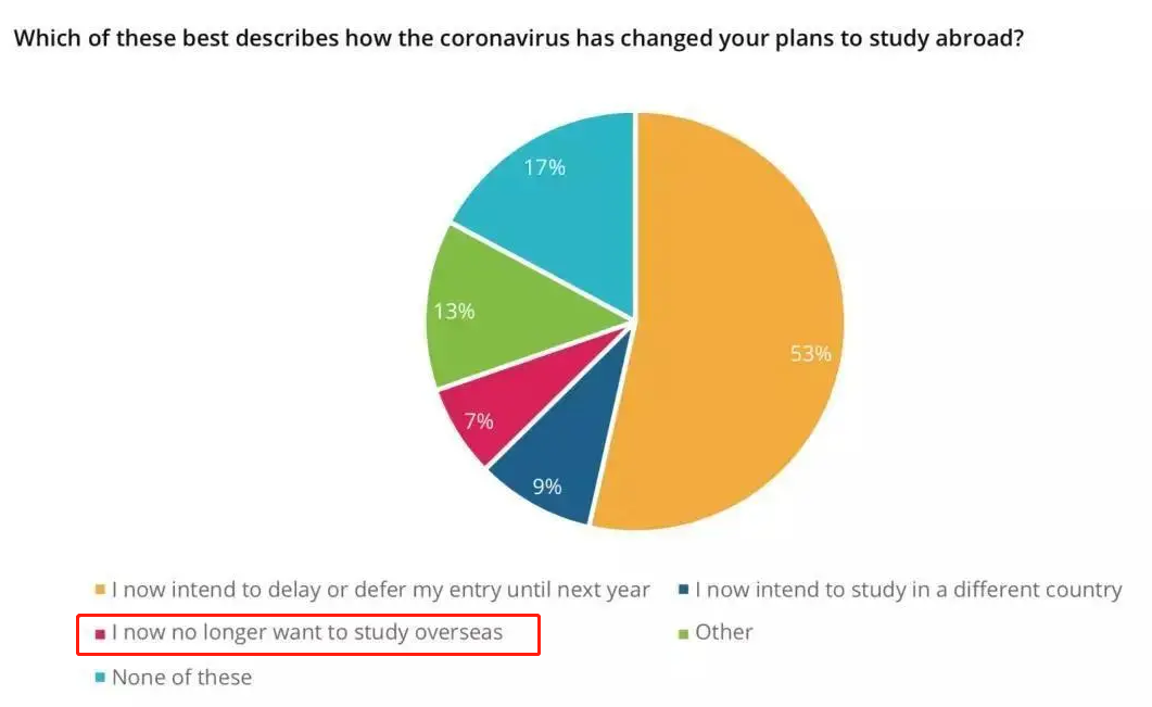 中国留学生更少,仅有4%放弃留学,绝大部分人只是因疫情暂缓留学计划。