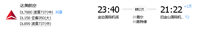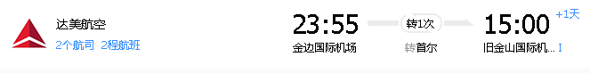 官网上,7月目前可以查到不少航班飞往美国,以下以7月16日前往旧金山为例,共有4种方式抵达美国: