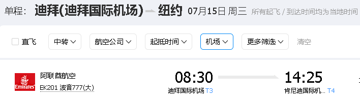 在迪拜当地隔离满14天后,迪拜飞美国可搭乘阿联酋航空前往。