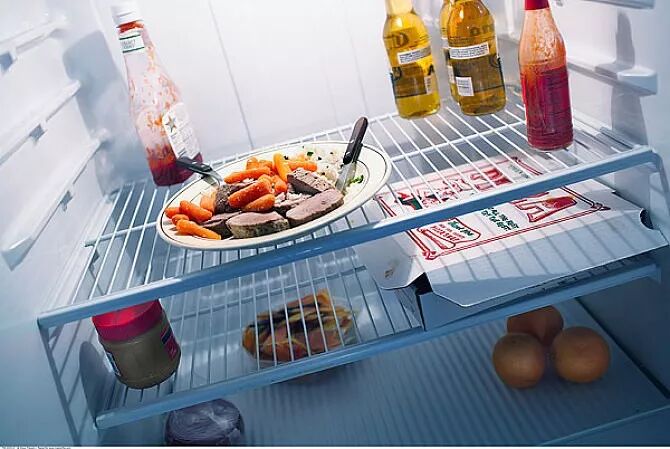 最后,绝对不要把食物放在打开的货柜里,特别是生肉和剩菜。不然这会为细菌提供一个繁殖地。