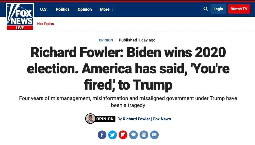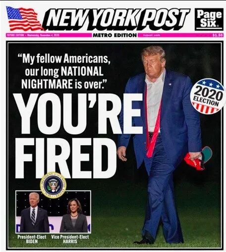 【拜登赢了2020年大选。这是美国人在对川普说:你被炒了。】