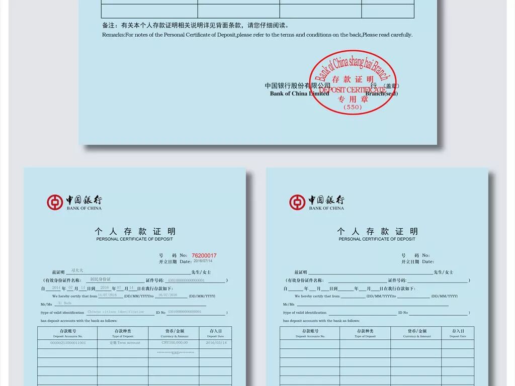 存款证明就是证明你的家庭有能力负担你未来几年学习和生活费用的重要材料。开具存款证明也要注意必须是中英文对照,尤其是存款人姓名,要有英文拼音,存款额度一般建议是50万人民币。