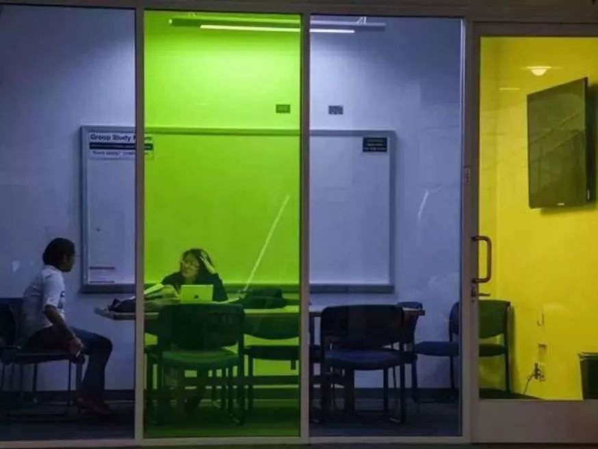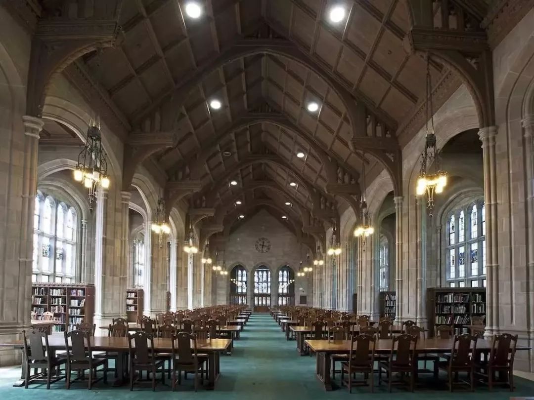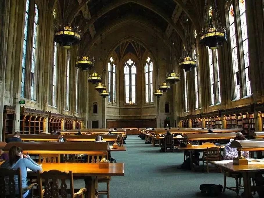 在Suzzallo阅览室中,书架上布满了手工雕刻,每一扇窗户都是不一样的彩色玻璃镶嵌装饰,环境既温馨又让人肃然起敬,给学生们营造了安静而有感染力的学习空间。