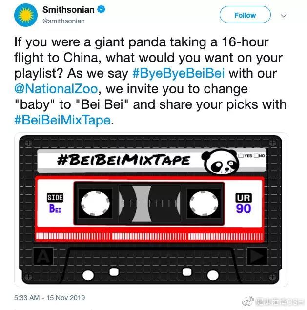 “如果你是熊猫贝贝,你在16小时的长途飞行里,最想听什么歌呢?把歌名中的“Baby”替换成“BeiBei”即可”