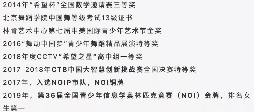 从目前可以找到的简历来看,这是一个德智体美劳、素质教育全面发展的姑娘,喜欢跳舞,也热爱编程。