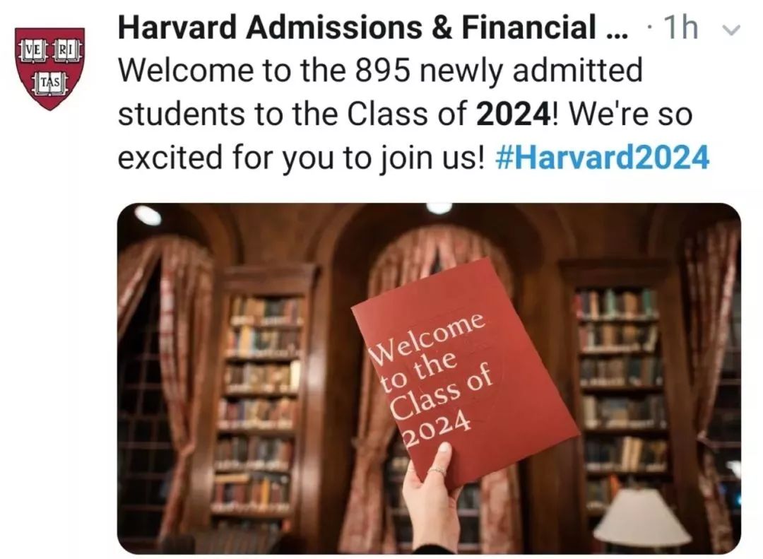 美国当地时间12月12日,哈佛大学在官方社交媒体上公示了今年的ED申请结果,在全球6424名申请者中,895名学子获得早申录取名额。