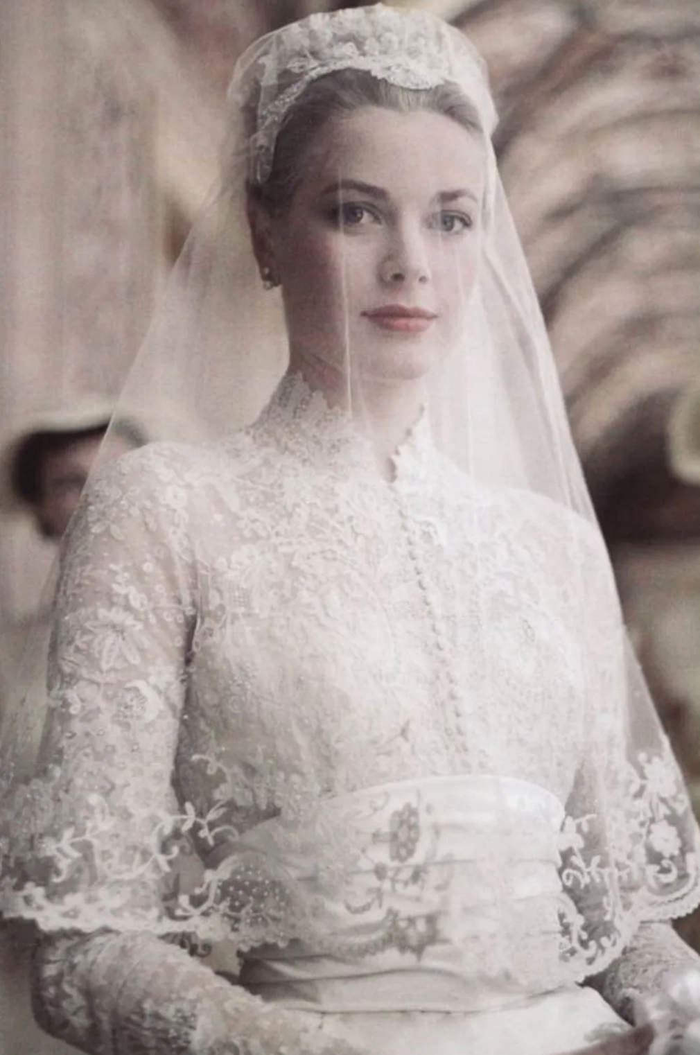 最让人过目不忘的,是格蕾丝那套成为了经典的的婚纱。