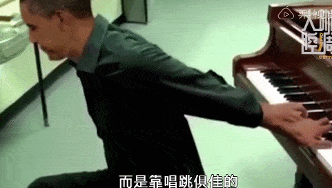 奥巴马不仅会弹吉他,还会反手弹钢琴: