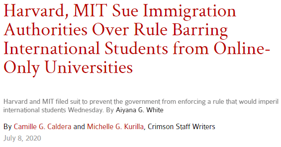 针对美国政府近期出台的国际学生签证新政策,哈佛大学麻省理工学院于8日向联邦法庭提起了诉讼。