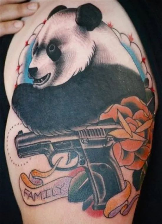 这就是熊猫纹身背后的理念,老外爱死了这一套。即便他纹完后下一秒就掏出枪在街头猛干,这也不妨碍他心中充盈的爱。