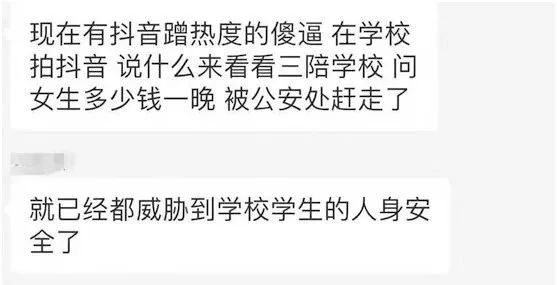 甚至有人在校门口,直接问女学生多少钱一晚,然后拍视频上传到抖音。