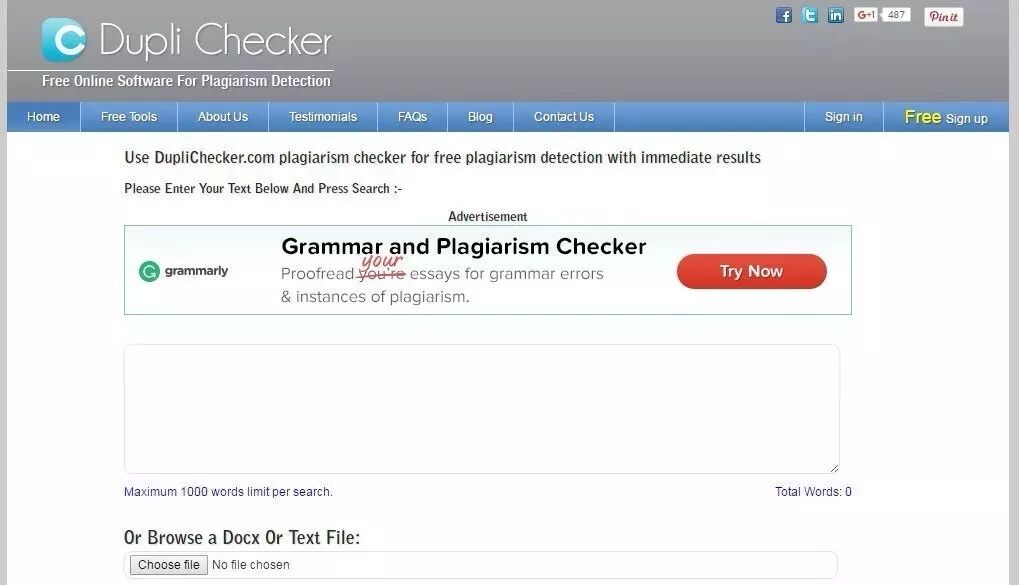Dupli Checher可以直接将一段文字粘贴进输入框查询,不过每次查询的字数不能超过1000字。也可以选择一个word文档上传查询,出现结果后点击 “Compare Text”就可以查看具体的重复情况了。