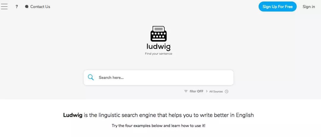 Ludwig是个能帮论文提升语音表达的网站。它的数据库专业而庞大,包括Forbes、Independent、The New York Times等。将你不确定的短语或者句子输进去,它就会帮你从数据库中检索,看看这些专业的英语文章里有没有使用过这样的表达方法。