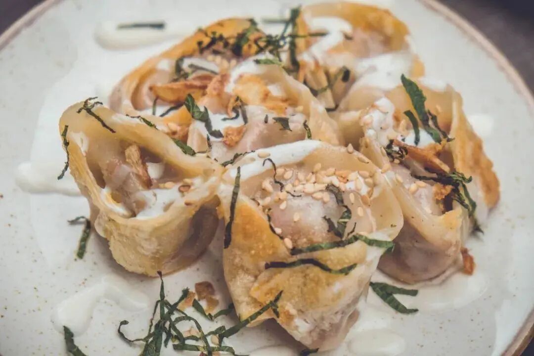 店里不论是主食、主菜还是甜点,都是以饺子的形式呈现:素食餐里有牛油果加黄瓜馅的饺子、小吃类代表是五花肉馅饺子、甜点则有苹果派馅的饺子。
