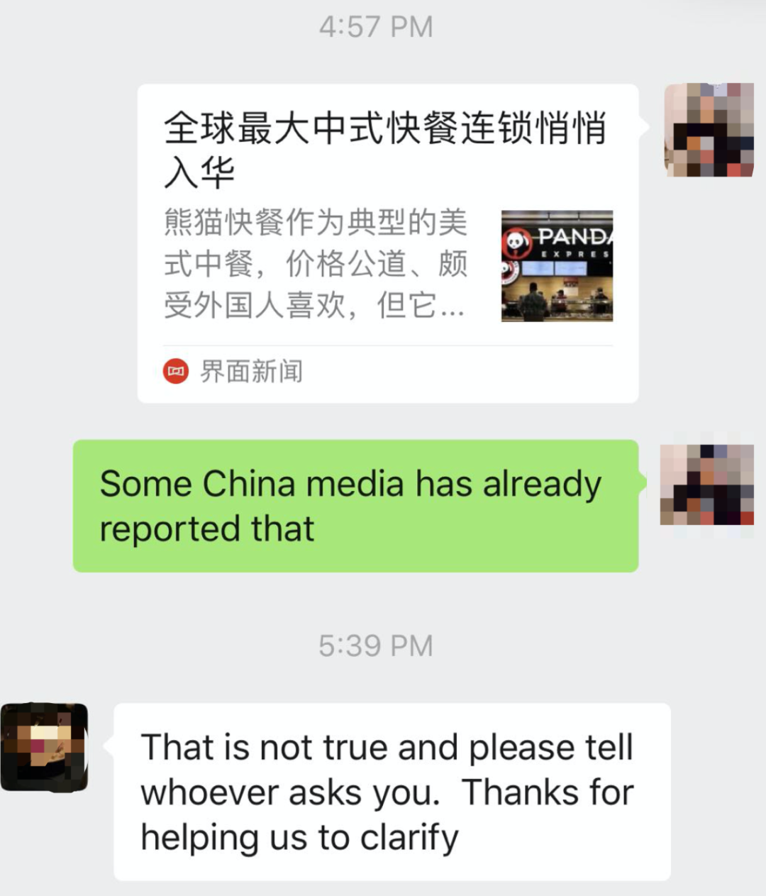 美国Panda Express VP Gigi Cheung表示:在昆明的这家“熊猫餐厅”并不是美国Panda Express 的连锁店!
