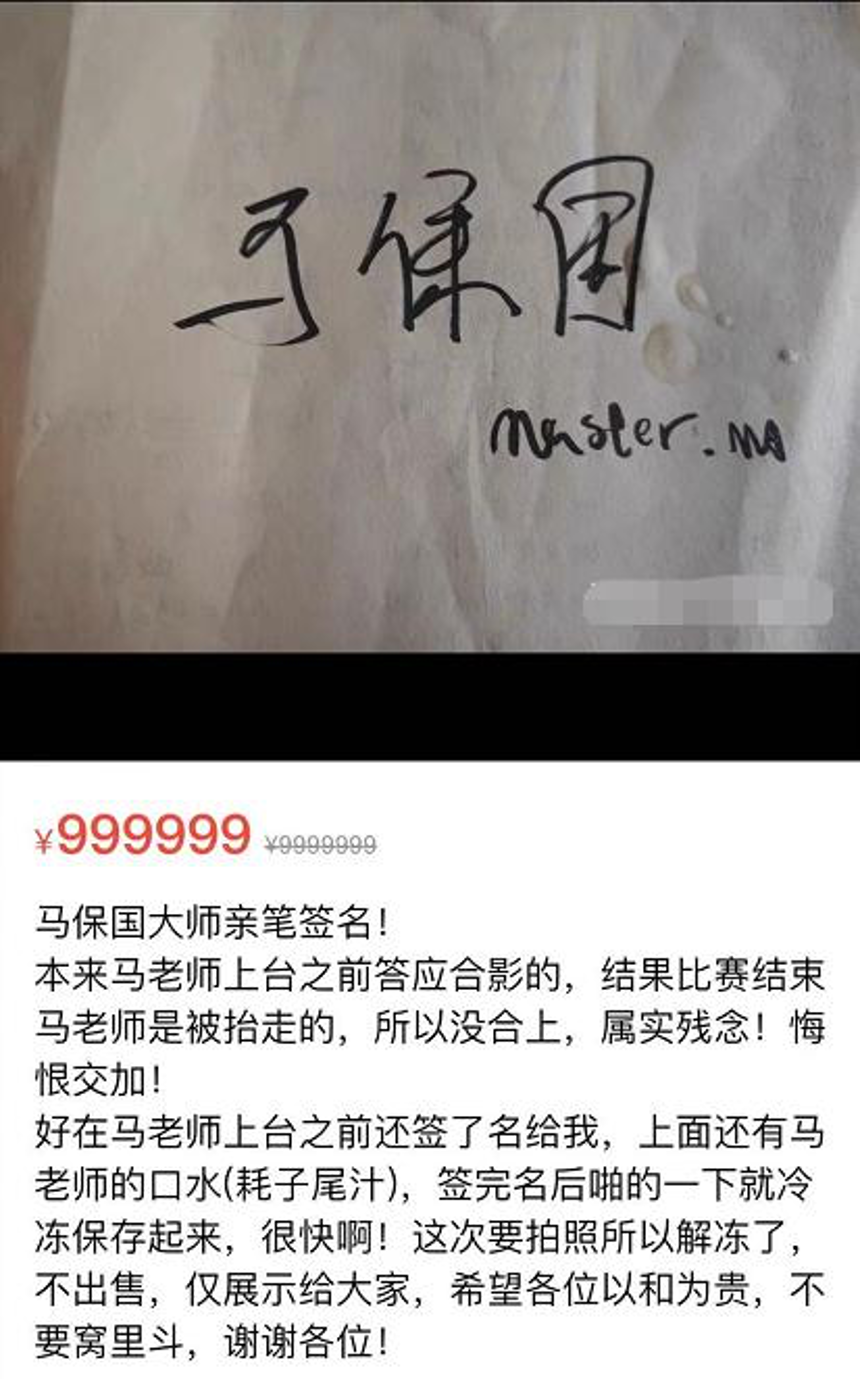 价值 999,999 元的马保国亲笔签名,附赠几滴耗子尾汁: