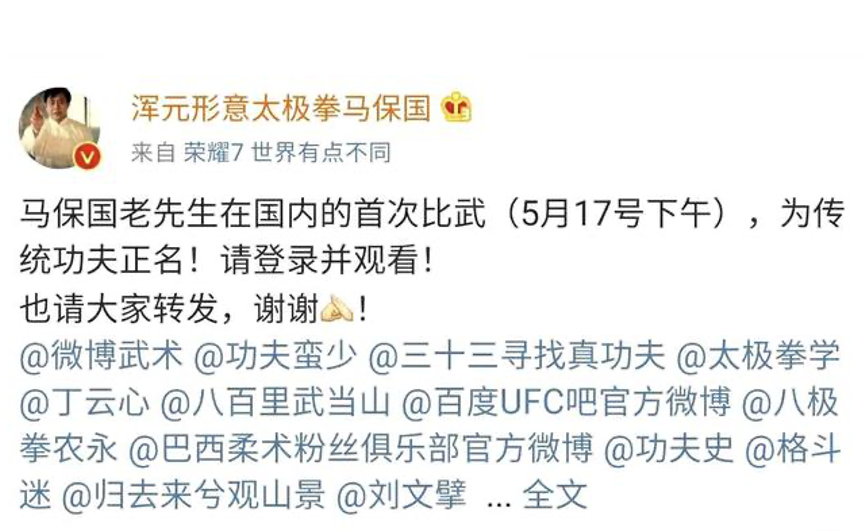 似乎是尴尬不知怎么应对网友的质疑,马保国在赛后选择了沉寂,数月没有在网络上发声。