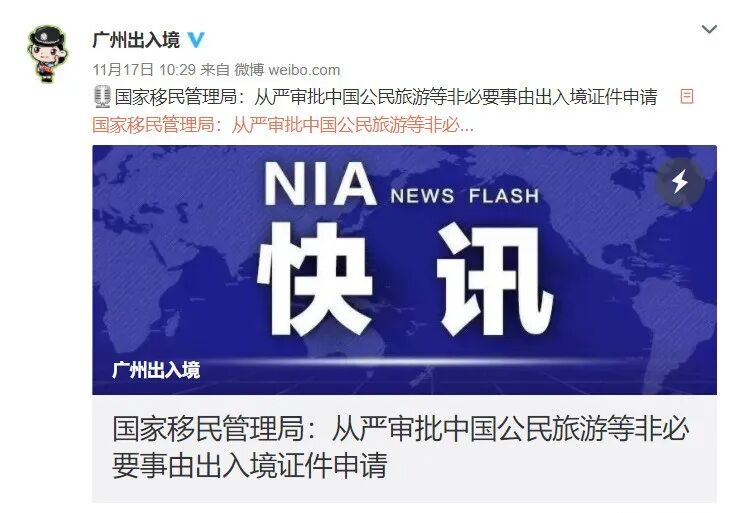 同时,还将从严审批中国公民旅游等非必要事由的出+入境证件申请,劝阻和限制内地居民旅游、探亲、访友等非必要、非急需出入境活动。