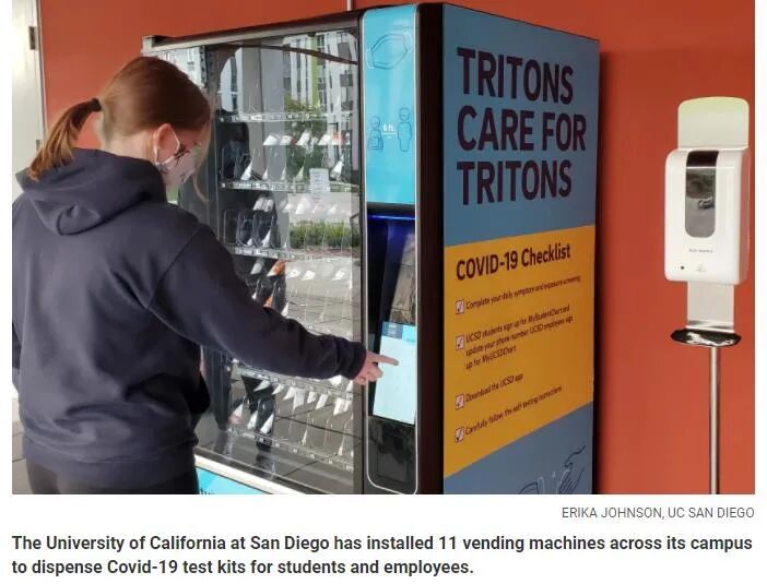 加州圣地亚哥分校校园内安装自动售货机用于为学生和员工分配病毒测试套件