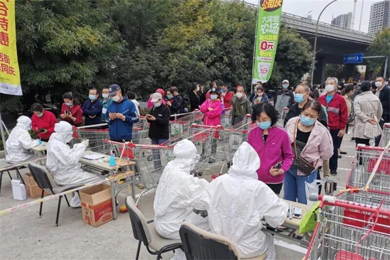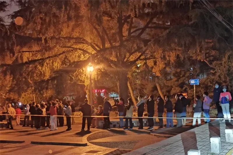 被外媒广泛报道的视频显示居民在周日晚排队接受测试,并补充说其中一些测试点的开放时间为07:00至23:00。