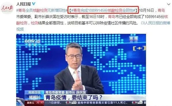 截止至10月16日上午8时,青岛已完成超1087万份采样,其中1016万份检测结果已出,并未发现新增阳性样本,报道称,青岛采样工作于16日12时完成,同日下午18时出具全部样本检测结果,比原计划提前了6小时。