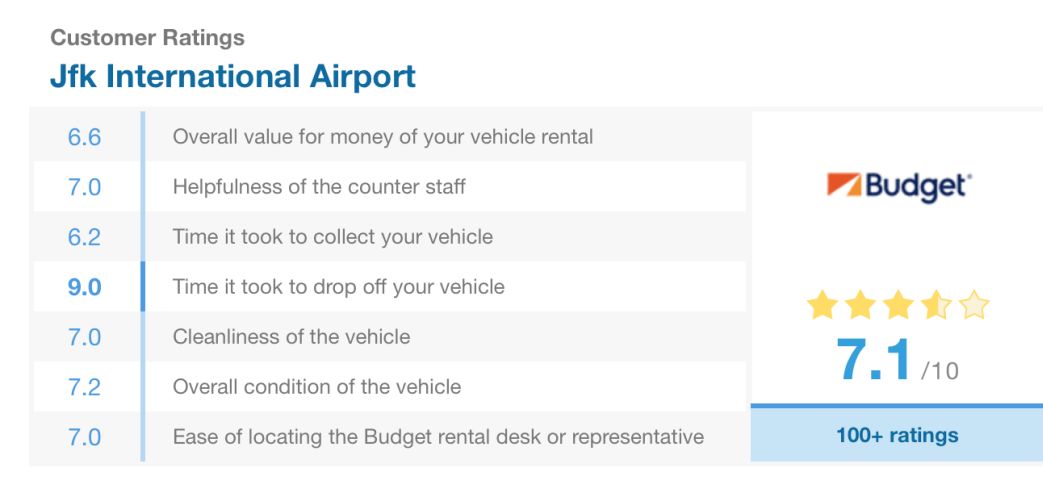 不同租车公司的服务水准也不一样,rentalcars.com也提供了顾客对租车公司的评价数据,在搜索租车服务时可以看到:
