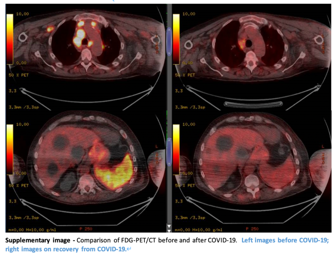 发现霍奇金淋巴瘤后不久,患者确诊新冠病毒感染,并出现呼吸困难等症状。