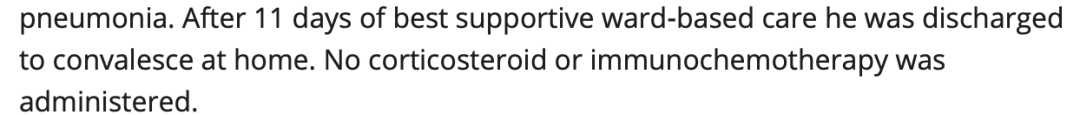 男子确诊这么多疾病之后,院方只是给他做了11天的支持性护理,就让他出院在家休养,并未给予皮质类固醇或免疫化疗。