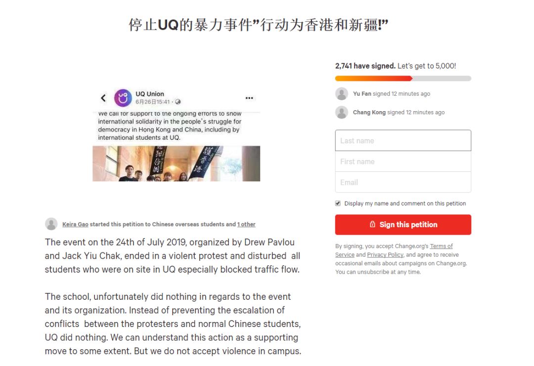 图源:“粉丝”给Drew Pavlou发布的请愿书