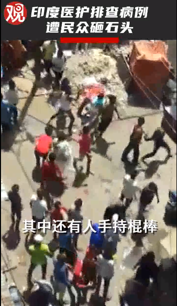 4月印度中央邦印多尔市,医护人员在检测一位跟新冠患者有过接触的居民时,遭到当地民众暴力袭击。