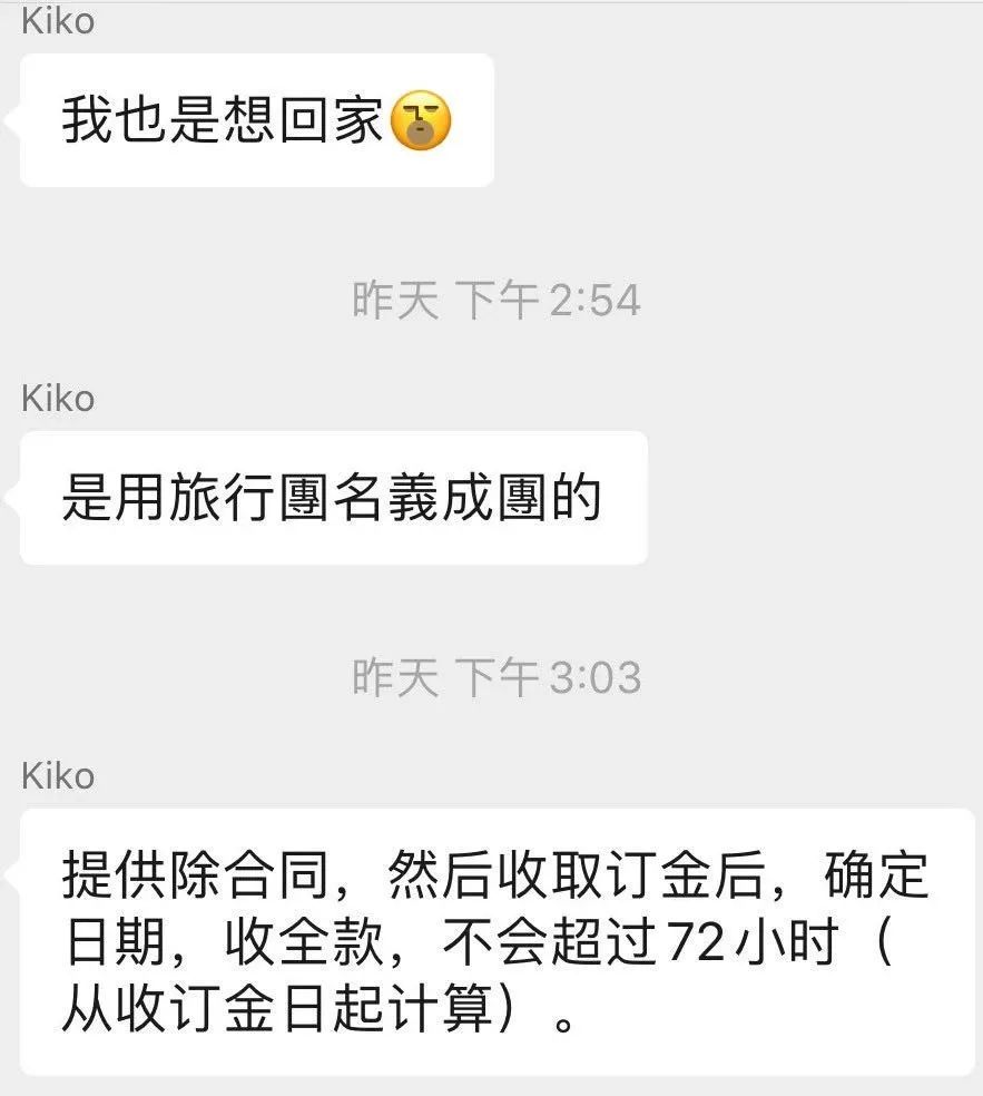 她的理由是:我自己也想回家,是用旅行团的名义成团的。