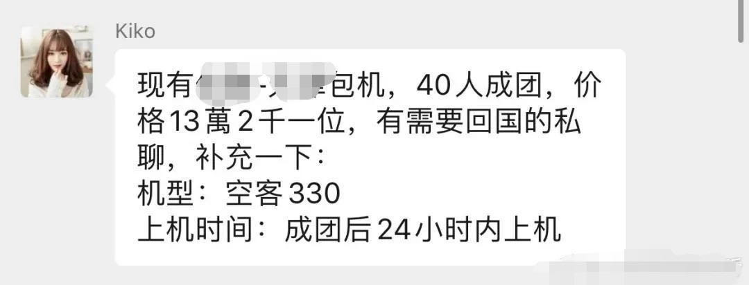 他们通常会在各个留学生的群里,直接发布一些消息说可以组团包机回国,再发布一个比较合理的价位。