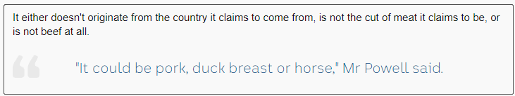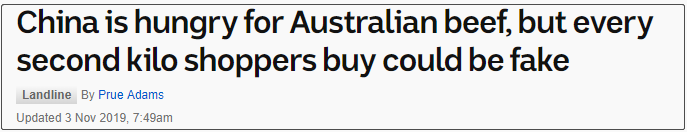 澳洲媒体ABC的报道,根据普华永道的估算,在中国市场销售的“产自澳洲的牛排”中,有大约50%的牛排都是假的!