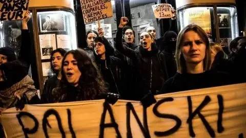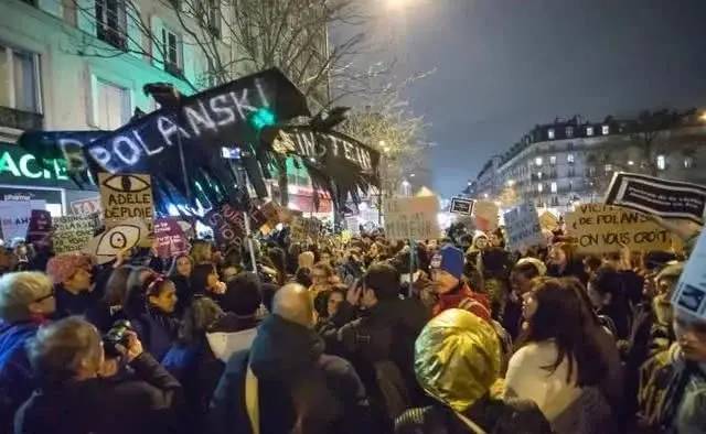 而在场外,数百人聚集举牌高喊,以抗议波兰斯基获得提名。