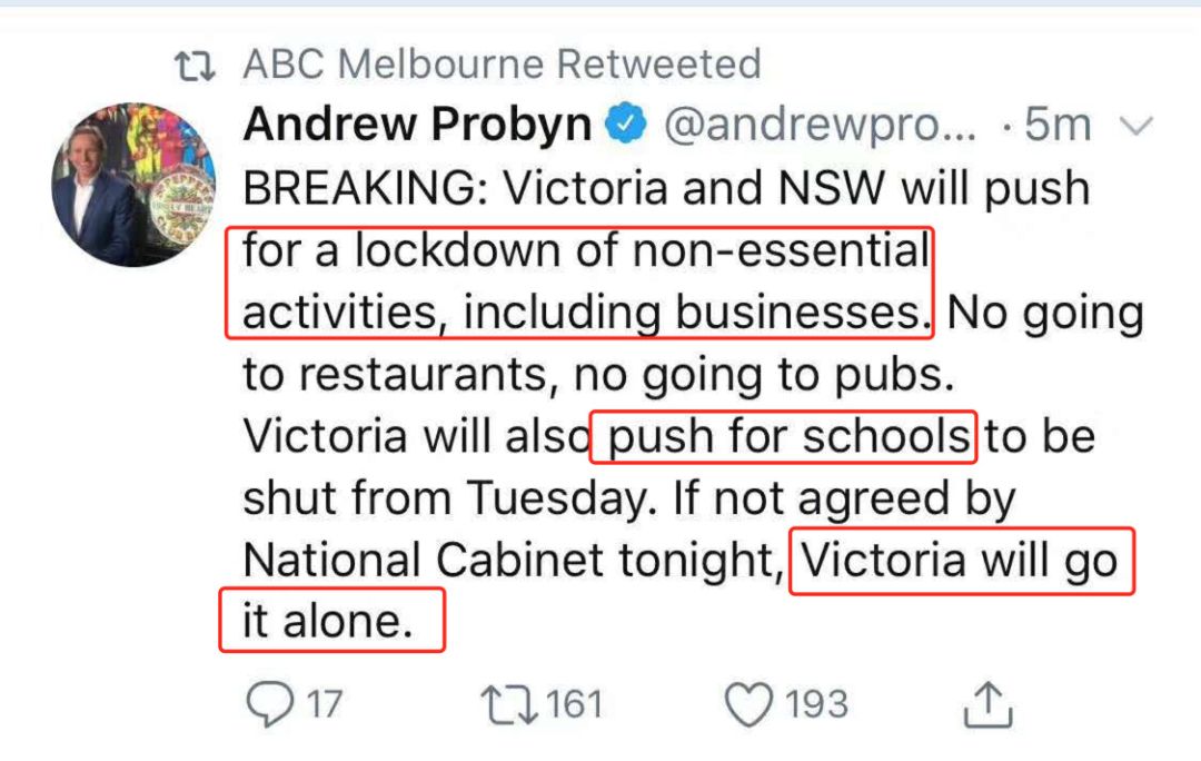 澳洲疫情爆发2个多月以来,从全民不知所措,到现在的禁令、补贴、举措走起来,