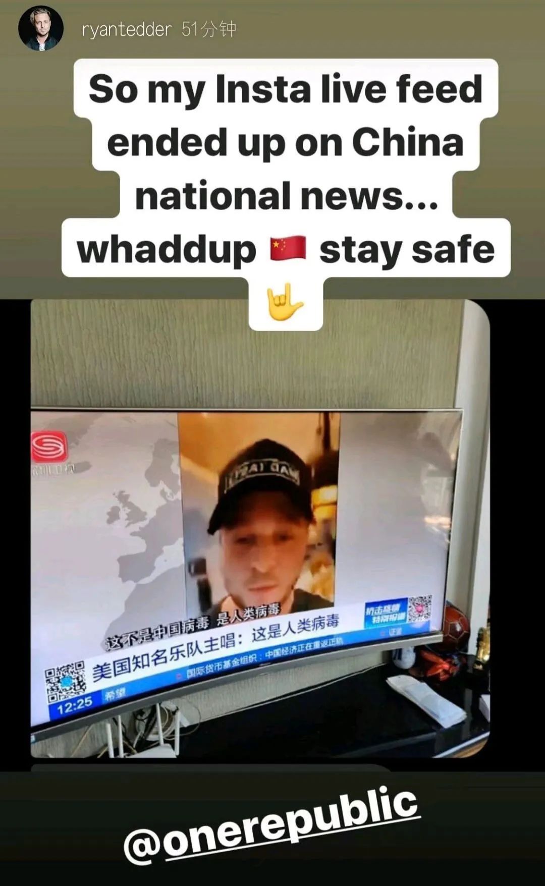 另外,美国知名乐队共和乐队 One Republic 的主唱 Ryan Tedder ,早前在网上发布视频称:“ 中国病毒 ”是垃圾话!
