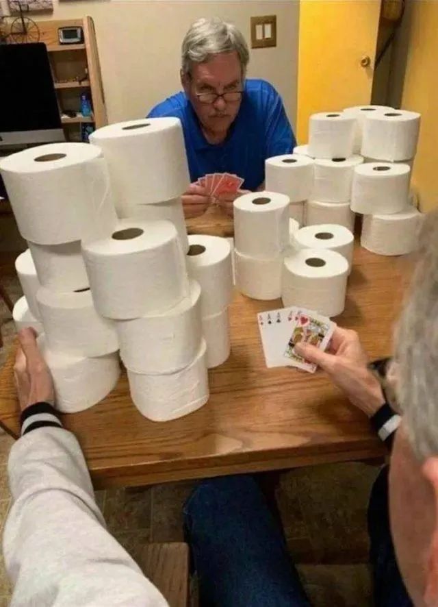 噢对了,当初疯狂地从超市抢纸巾囤货,结果用来打保龄球,被当球玩,搞行为艺术,拍九宫格小视频,甚至当成斗地主的筹码…