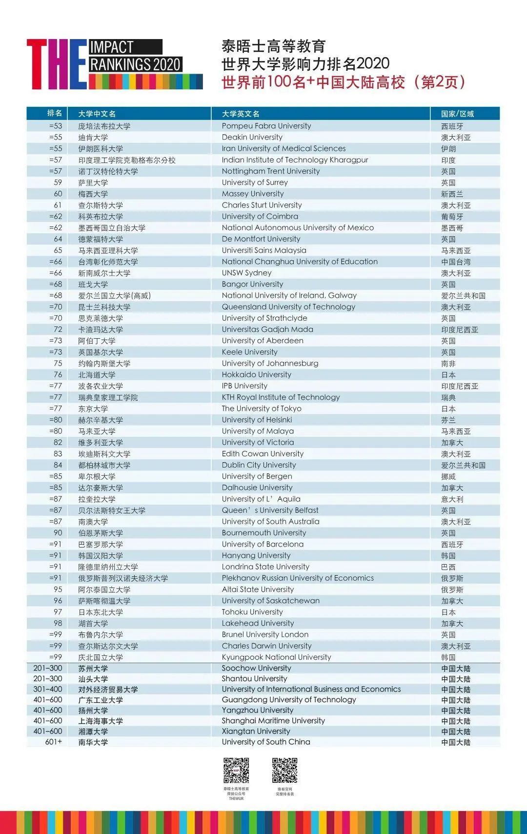 2020年泰晤士世界大学影响力排名发布!重视社会价值的大学,必定走得更远!
