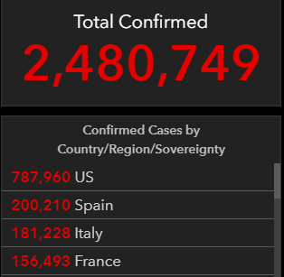 根据约翰霍普金斯大学最新数据,美国新冠肺炎确诊人数为787,960人
